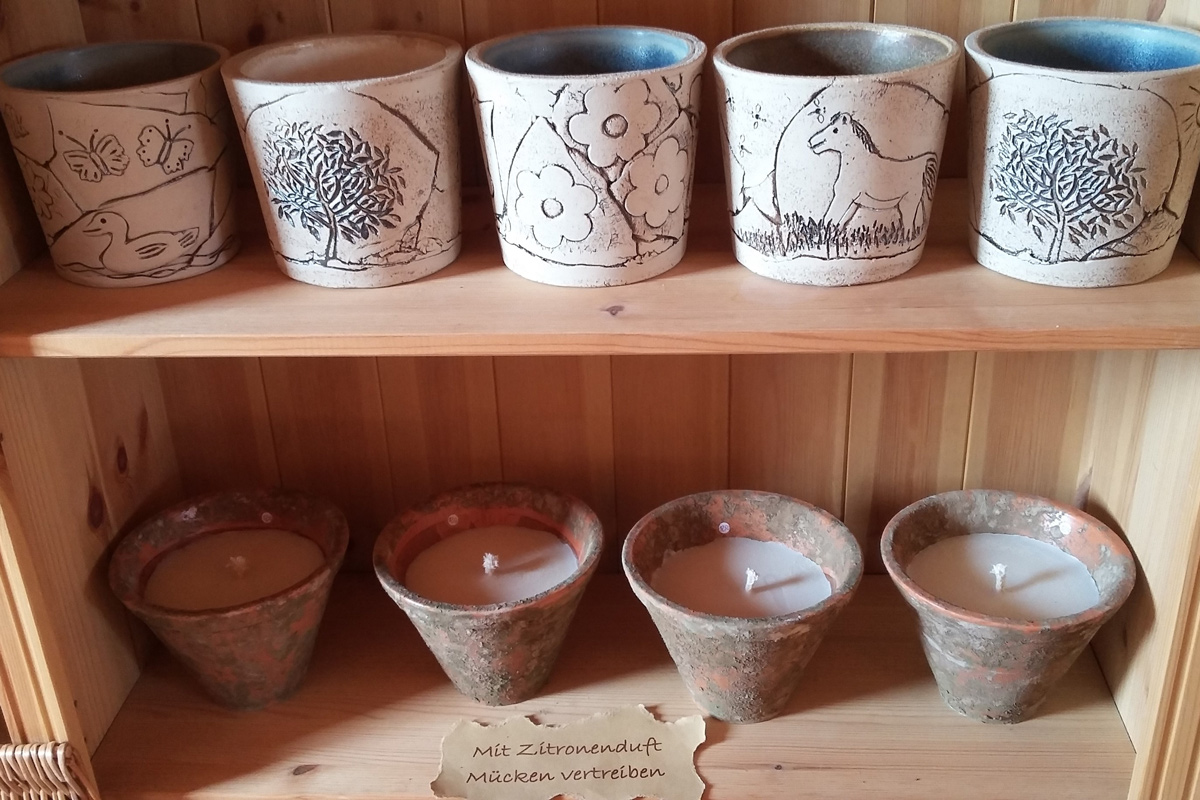 Wunderbar gelegen, direkt an Wiese und Wald, finden sie meinen Laden mit handgefertigten Töpferwaren aus meiner Werkstatt und Wunderschönem für Haus, Hof und Garten aus Holz, Metall, Rost und Keramik, von mir ausgesucht für sie. Wer das Natürliche liebt, ist bei mir genau richtig. Mein kleiner Garten lädt sie herzlich ein zu verweilen und zu träumen!